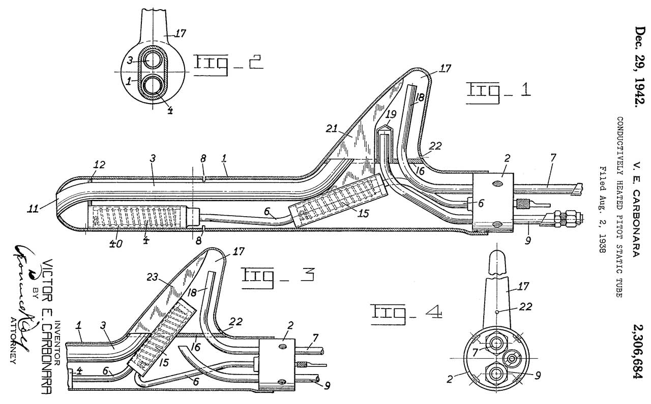 2609685 Aircraft instrument, Jr John H Andresen, KOLLSMAN INSTR CORP, Filed: 1944-09-22, Pub: 1952-09-09 - air speed and indicating in response to the aircraft angle of attack.