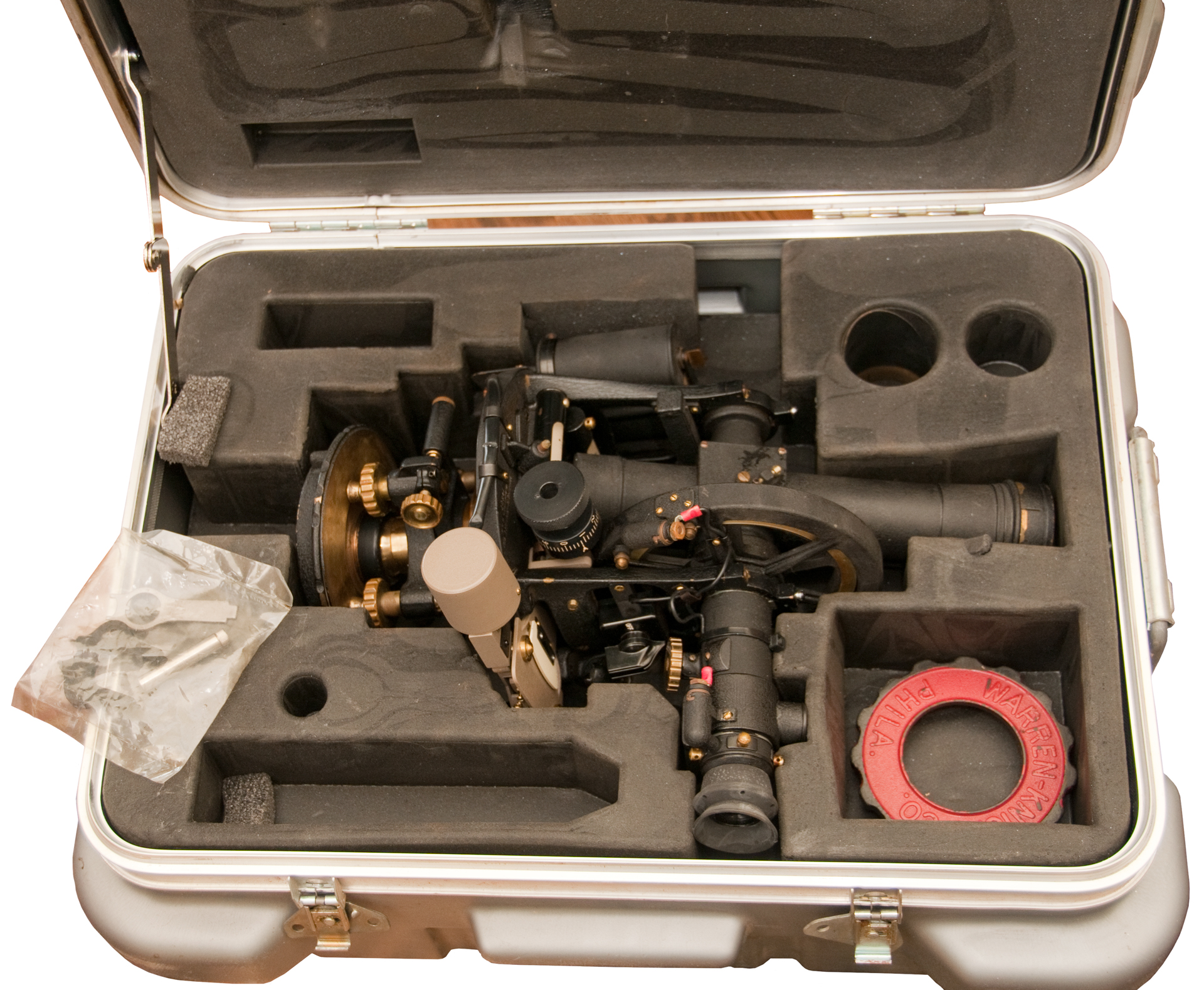 Setup and leveling is the same as for any surveying tripod mounted transit or theodolite. And like a surveying instrument the elevation angle is relative to a bubble level. But unlike a surveying setup the azimuth scale needs to be referenced to true north. TM 11-6675-200-10 for the military ML-47 lists a number of ways of finding North in order to calibrate the azimuth scale. The ways of orienting the azimuth scale to North are: Compass, Sun, Polaris, Equal star/Sun Angles, Datum Lines or Transference.