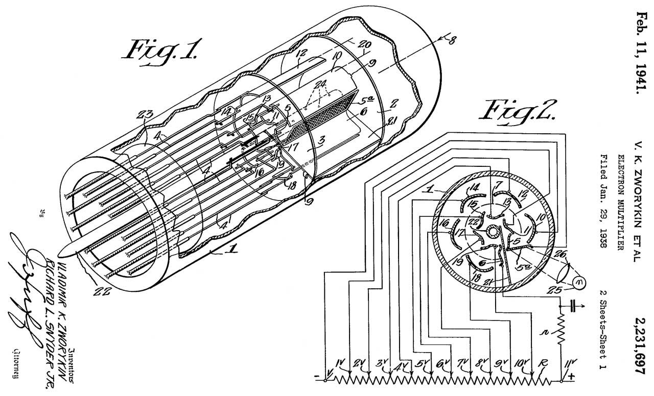 2231697 Electron multiplier, Vladimir K Zworykin, Jr Richard L Snyder, RCA, 1941-02-11, -