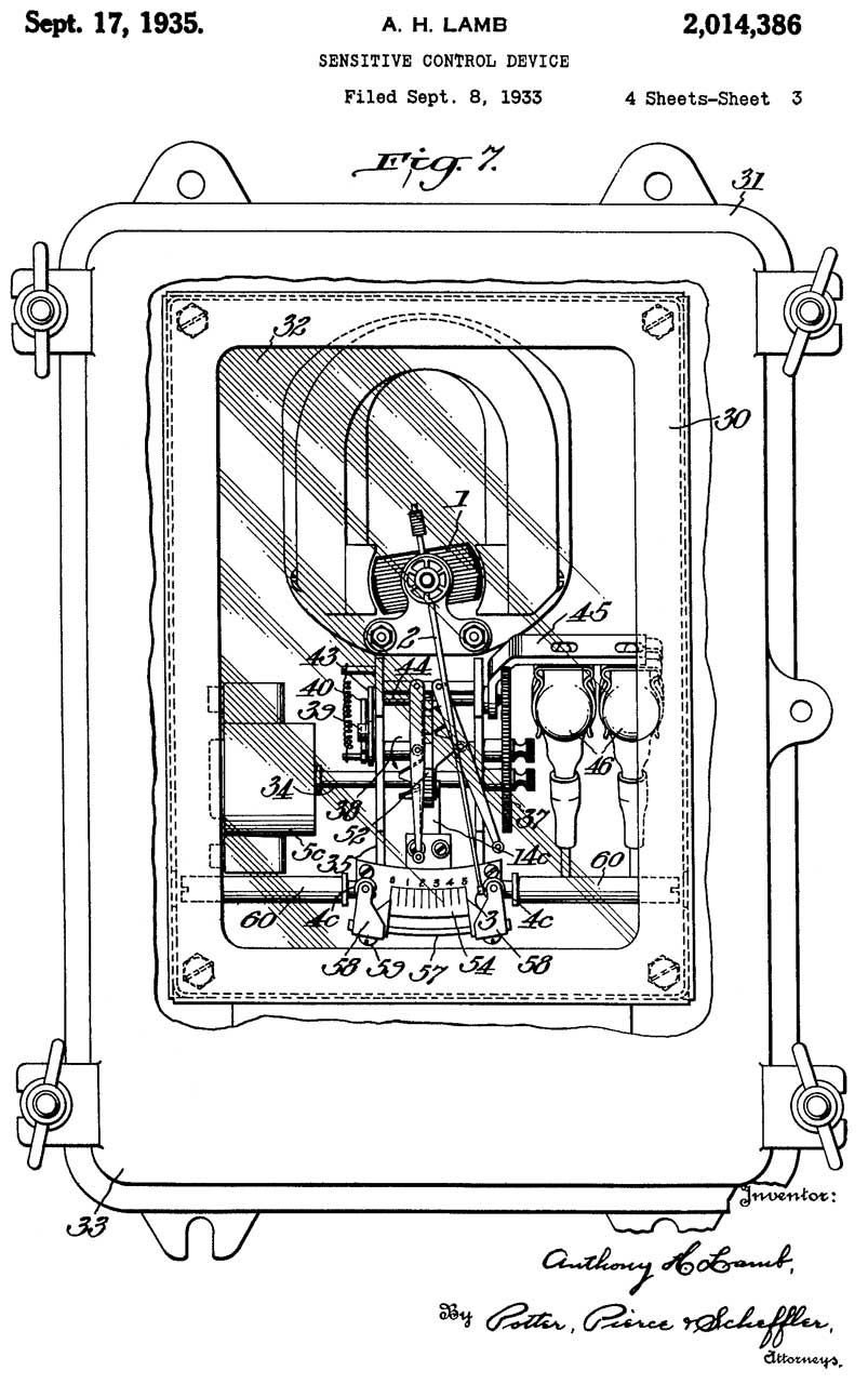 2062915 Control device, Anthony H Lamb, Weston Electric Instrument Corp,1936-12-01, 335/150; 307/41; 307/102; 307/104; 318/122; 318/443; 318/448; 318/686; 335/179; 338/116; 338/150; 361/157 -