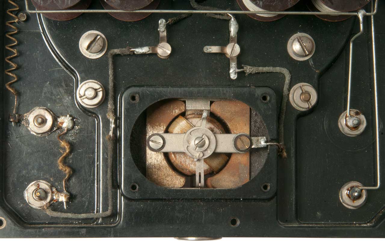 Harvard: Collection of Historical Scientific Instruments: sensitive DC relay, Weston model 30 - 20 uA controls 0.1A current.
