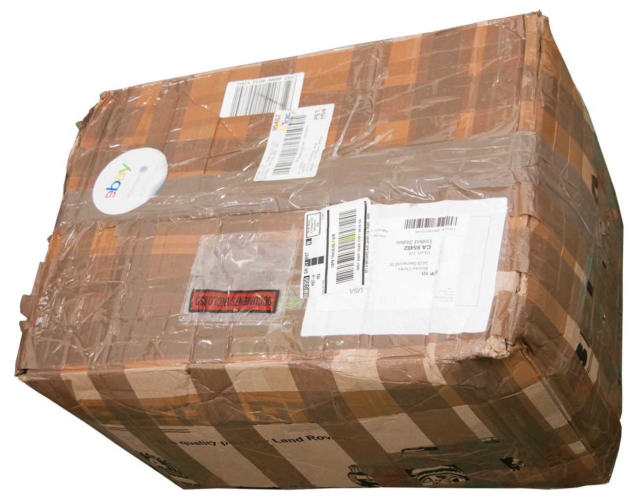Arrived 23 May 2018 - took three years to find one. Took 15 days from Peru, packaging was lacking but it got here. Note white styrofoam that's crushed into paper thin sheets sticking to it.