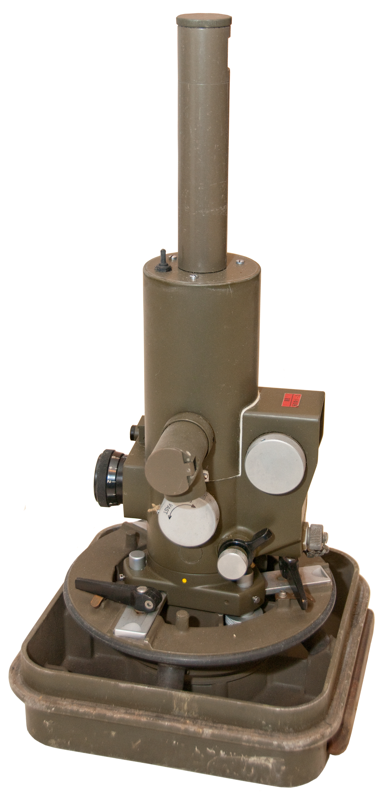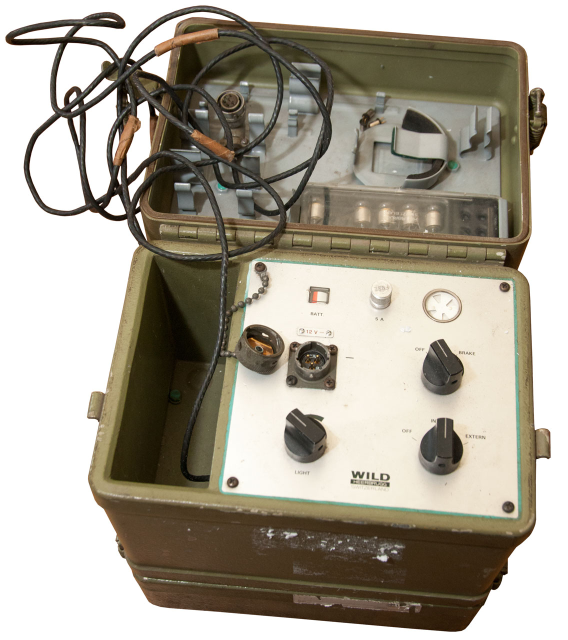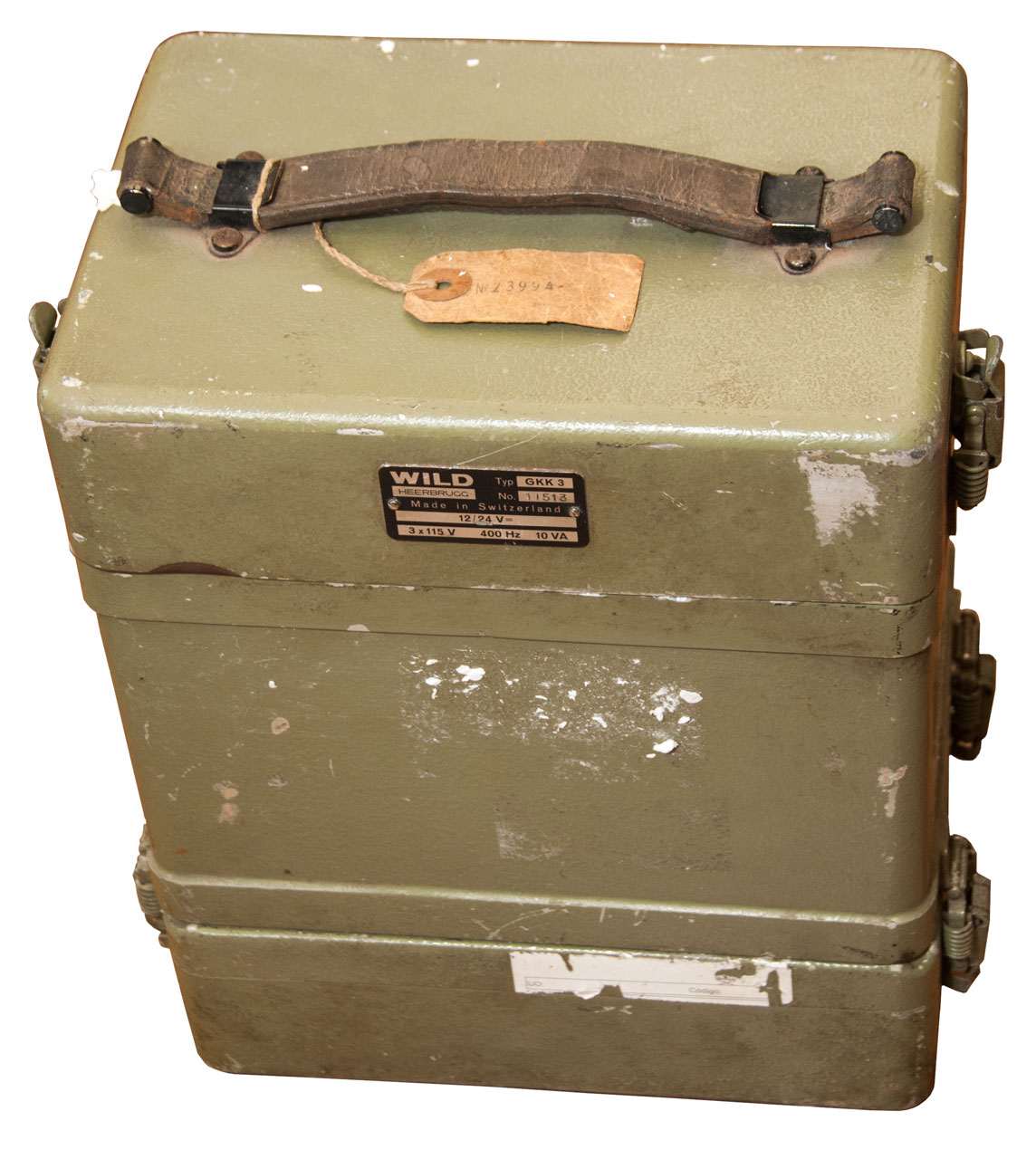 The Wild Heerburgg GAK 1 Gyro theodolite Attachment uses the same gyroscope but instead of having a built-in surveying telescope like this ARK 1 instrument, the GAK 1 must be mounted on top of a Wild theodolite.