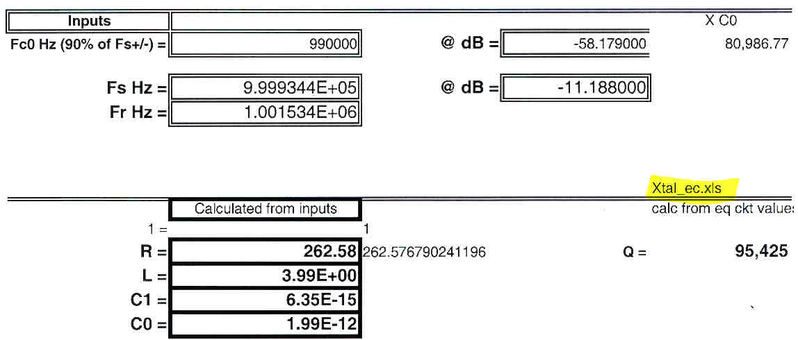 Xtal_ec.xls - spreadsheet to find equivalent circuit values and then plot a simulated response